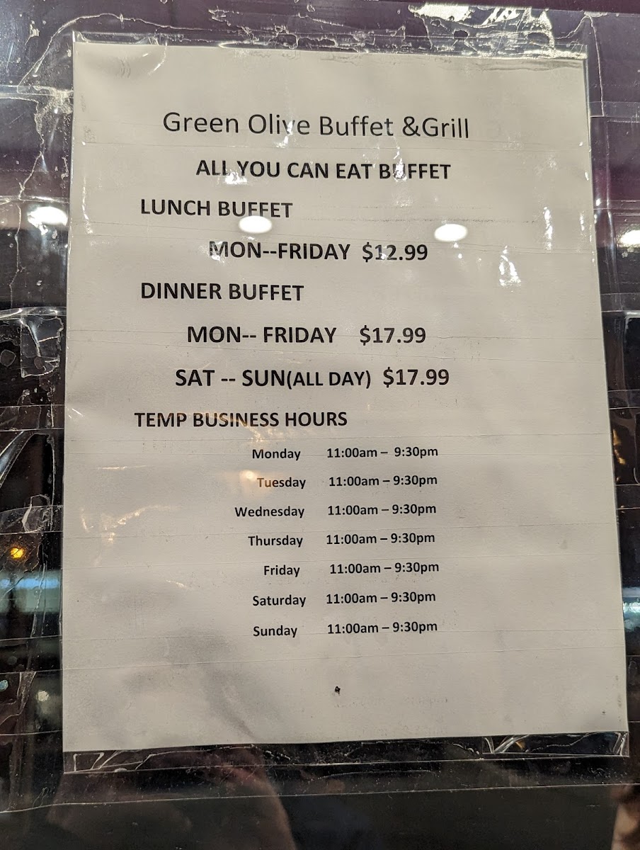 Welcome to Green Olive Buffet, a culinary gem tucked away at 7405 Richmond Hwy, Alexandria, VA. This delightful buffet offers a vibrant fusion of flavors, showcasing American, Italian, and Oriental cuisine. With an open kitchen that features a lively sushi bar and a Mongolian BBQ, diners are treated to fresh, made-to-order dishes.